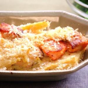 メインのドリアには魚の中でもビタミンB1,B2が豊富な鮭を使用し、食物繊維を意識したたけのこや玄米も使っています。とろけるチーズではなく、粉チーズを使うことで脂肪分もカット、カリカリ食感も嬉しいドリアです。また、付け合わせのサラダはビタミンCがたっぷりの春野菜。マヨネーズを牛乳で伸ばすことで脂質もカット。 新年度は何かと頑張り過ぎてしまう時期。そんなときに沢山摂りたい栄養素、ビタミンB1、B2、カルシウム、ビタミンCを豊富に摂れる献立です♪
