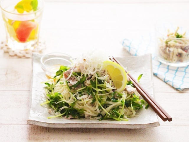 夏はどうしても火をあまり使いたくない!冷たいものが食べたい!という日が増えますね。そんな日でもバランスの良い食事が食べられる簡単献立をご紹介。素麺でも、しっかり豚肉でたんぱく質を補い、一緒に組み合わせた豆苗でビタミン、ミネラル、食物繊維も補える中華和え麺に、簡単に食物繊維、カルシウムが補える副菜を添えた献立です。夏の暑い日でも、しっかりバランス献立を摂ることで、代謝されやすい身体を維持して、代謝が落ちてきやすい秋にも備えることが出来るのです。さらに、夏バテ防止にもお勧めですよ。
