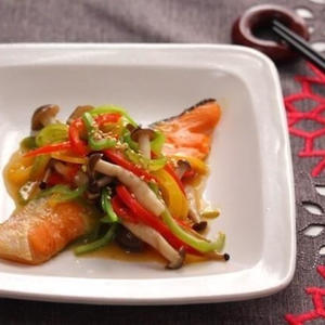 簡単に食卓に出せる焼き塩鮭にお野菜のあんかけやおかずを組み合わせた献立。ビタミンCが豊富なパプリカやピーマンに、ビタミンやカロテンが豊富な豆苗を使ったおかず、冷凍ほうれん草を利用した簡単汁ものと、バランスよく組み合わせています。塩鮭を買ってきたは良いけれど、どんな献立にしたら良いかな?と思ったときにもお勧めです。