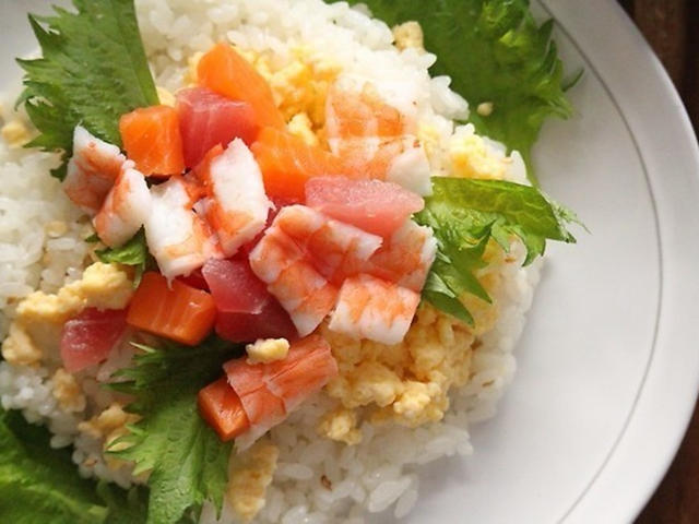 見た目もキレイで楽しいバラちらしの献立です。お刺身を買ってきてささっと作れる手軽さも嬉しい一品です♪