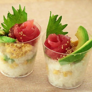 お祝い事やおもてなし料理としてもぴったりなカップ寿司。お刺身など生のお魚を美味しく食べれるのもお寿司のいいところです。食卓をカラフルに演出できて楽しめるのもいいですね。