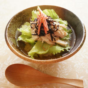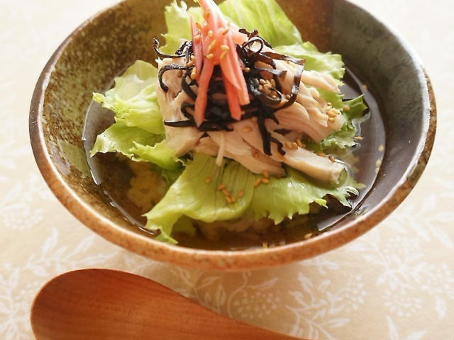 ヘルシーなのに大満足♪夜食にもピッタリ!鶏むね肉とシャキシャキレタスのスープ茶漬け