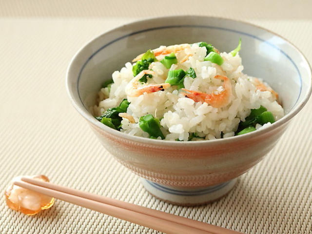 カルシウム補給バッチリ!食感も香りも楽しめる♪桜エビと菜の花のご飯