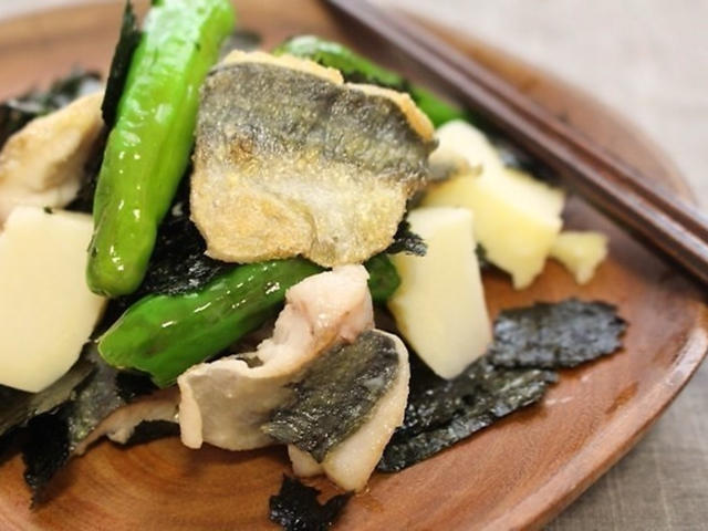 磯の香りがフワッと香る♪あじとしし唐の海苔炒め