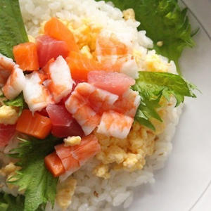 お酢や紫蘇の香りが食欲を増進!暑さでバテ気味な体に優しい、バラちらしです。お刺身をたっぷりのせて、ダイエット中には欠かせないたんぱく質もしっかり確保。簡単調理なのも嬉しい一品です。さっぱり食べながらもしっかり栄養を摂れちゃいます。