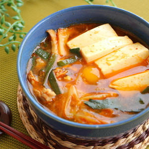 どうしても辛いもの食べたくなったら、こちらの純豆腐チゲ風レシピはいかがでしょう。豆腐がたっぷり使われており、ヘルシーに満腹感を得られます。唐辛子のカプサイシンが肥満を予防してくれますし、お腹いっぱいに食べちゃってください。