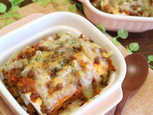 低脂質高タンパク質で、ヘルシーなはんぺんで代用したラザニア!トッピングに人気のチーズを使っても脂質の量が抑えられているので、嬉しいですよね。食べ過ぎ注意ですよ。