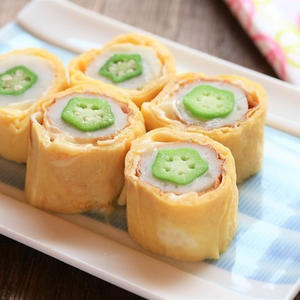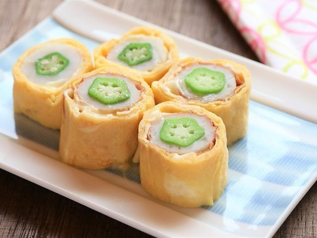 とろ~りチーズが美味しい!オクラちくわのチーズ卵巻き