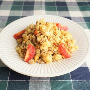 存在感満点!食べごたえ満点!れんこんや玉ねぎが入った、満腹感満点のチャーハンです♪よく噛むことで早食い防止にも◎ブロッコリーの副菜やコクのあるミルクスープも加わって、これを食べれば満腹間違いなし!
