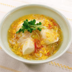 トロっと美味しい♪ご飯にかけてもOK!おぼろ豆腐と卵かにかま餡かけ