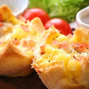 食パンで簡単に作った型で、型ごと食べることができるキッシュにしました☆バターたっぷりパイ生地や、生クリームを使用しないレシピなのでダイエット中にもお勧めですよ(^^)食パンで型を作るひと手間がありますが、朝が苦手なお子様も喜んで食べてくれますよ♪忙しい朝にも頑張ってみてください!