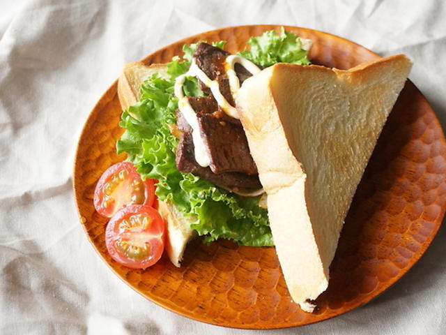 お腹も大満足!ガッツリ☆牛もも肉の焼肉サンド