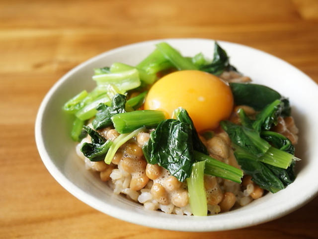 ササっと作れて栄養満点♪玄米ご飯の納豆小松菜TKG