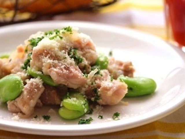 しっとり柔らか♪鶏もも肉とそら豆のコンソメ蒸し
