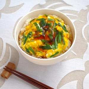 レンジでパパっと簡単♪にらとふわふわ玉子のあんかけ丼