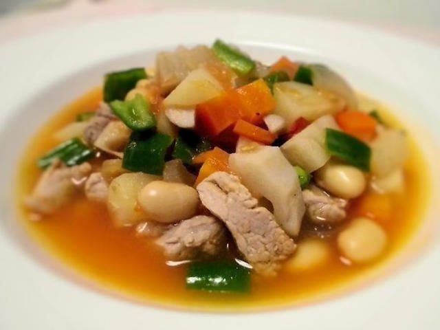 1皿で栄養満点♪野菜たっぷりポークビーンズ