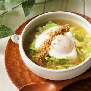 忙しい朝はコレで決まり!落とし卵とキャベツのおかず味噌汁