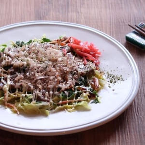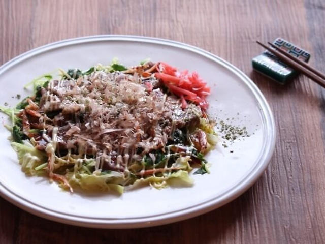 豚肉の蒸しにはポン酢が定番ですが、今日はソースとマヨネーズでお好み焼き風に仕上げましたよ☆お好み焼きは糖質が気になって食べられない、お好み焼きのソース味にはごはんも欲しい!という方におすすめのレシピです。