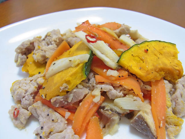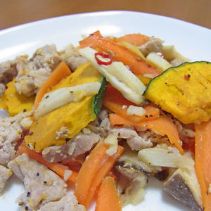 疲労回復&夏バテ予防に!豚肉とかぼちゃのペペロンチーノ風炒め
