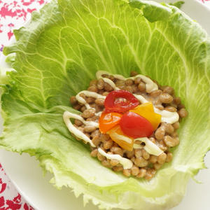 納豆をサラダ感覚で! レタスとトマトの酢漬けと一緒に盛り付けるだけのとっても簡単な1品です。 トマトの酢や酸味と納豆の相性も良く、納豆が苦手な方もサッパリと食べることができてしまうかもしれませんよ☆ もちろんレタスにごはんを一緒に包んでも美味しいですよ♪