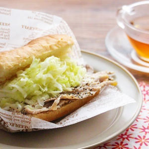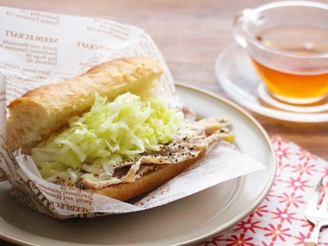 たっぷりキャベツがヘルシー♪グリルペッパーポークのサンドイッチ