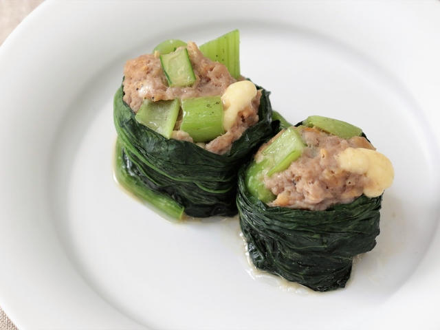 一般的なシュウマイは皮の部分に炭水化物が多く含まれていますが、代わりに小松菜でシュウマイの具を巻く事で糖質を抑えられます。また。小松菜やチーズ、小エビにはカルシウムが豊富に含まれています。女性は更年期を過ぎると骨粗しょう症のリスクが高まりますので、積極的にカルシウムを取り入れていきましょう。