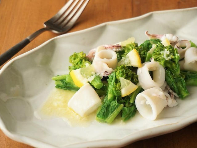 素材の味を楽しむ!豆イカと菜の花のレモンバターソース