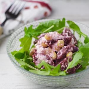 エリンギがカサ増しになり、ボリューム感のある一品です。バジルの風味とトマトの酸味が相性バツグンです。また、食べる輸血と呼ばれるほど栄養豊富なビーツは生活習慣病予防に効果が期待できます。カッテージチーズは高たんぱく・低カロリーな食品ですので、ダイエット中でも安心して召し上がれます。