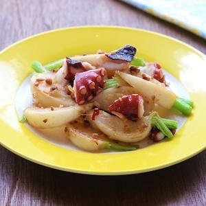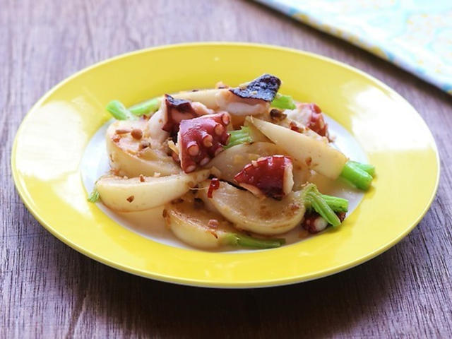 色どり鮮やか!カブとタコのアンチョビガーリックソテー