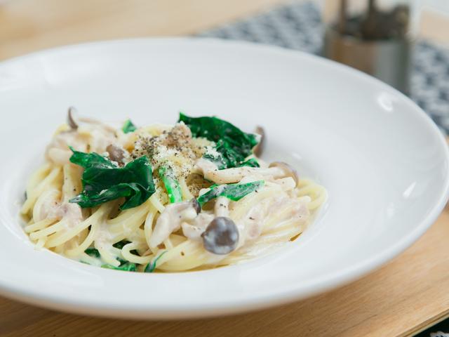 牛乳を使ってカロリーダウン、カルシウムアップ!ほうれん草のクリームパスタ