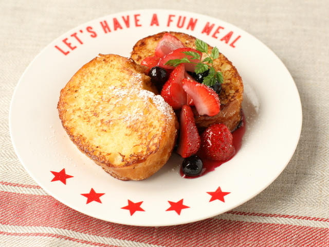 甘い朝食が食べたい!という時もありますよね。糖質や脂質を摂りすぎてしまわないか心配になるかもしれませんが、牛乳のかわりに低脂肪乳を使用したり、フルーツの甘みを活かしてお砂糖は控えめにしているので、安心です♪華やかなサラダやフルーツヨーグルトと合わせて、ビタミンたっぷりで元気になれる朝食です。