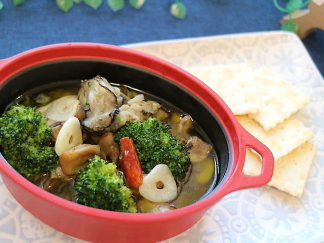 栄養たっぷり♪牡蠣ときのこのアヒージョ