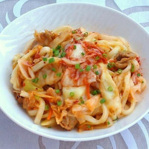 キムチのピリ辛とチーズのまろやかさが好相性☆レンジで簡単!キムチ―ズうどん