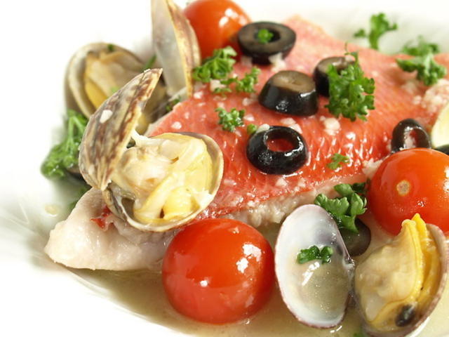 魚介の旨味たっぷり!金目鯛のアクアパッツァ