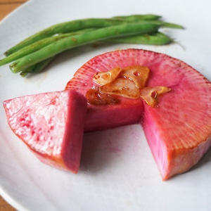 長芋入りのとろとろホワイトソースをたっぷり使った、鮭と長芋のとろ~りグラタンがメインの献立です。チーズの香ばしい焼き目が食欲をそそります。春キャベツの柔らかい食感や甘みを楽しむコンソメ煮や、バター醤油味が美味しい赤カブのステーキを添えてどうぞ。