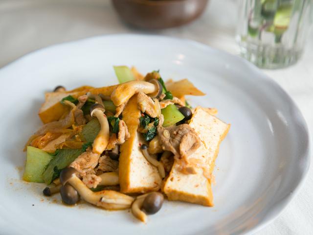 厚揚げの炒め物に豚肉を少し加えることでボリュームアップ!食べ応えがある一品になります。チンゲン菜は加熱しすぎると、すぐに色が変わってしまうので、サッと炒めるようにするとキレイに仕上がります。韓国風の味付けはごはんとの相性もぴったり。ごま和えとホタテのスープと一緒にどうぞ。