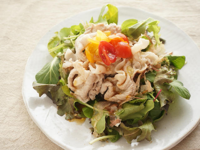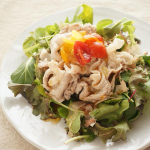 おいしくヘルシー!豚しゃぶ肉の酢トマトおかか醤油