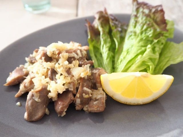 コリコリ食感が美味しい☆砂肝のねぎレモン炒め