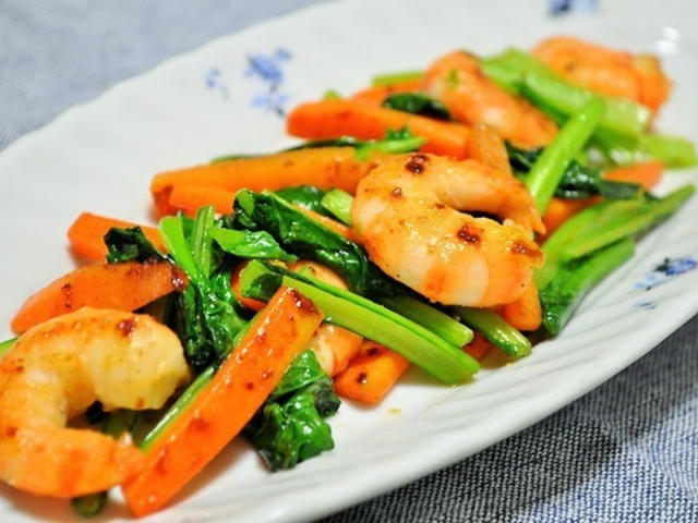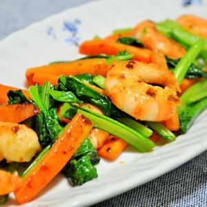 野菜不足解消☆エビと小松菜の中華炒め