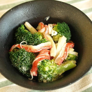 味付けに塩こうじとバターを使用した優しい味わいのオムレツです。大葉のかおりが食欲をそそります♪副菜のブロッコリーとかにかまぼこの辛子あえはピリッとした練り辛子の風味がアクセントとなっています。ブロッコリーの色素成分であるクロロフィルはコレステロールを減少させる効果が期待出来る為、動脈硬化予防にもおすすめです!