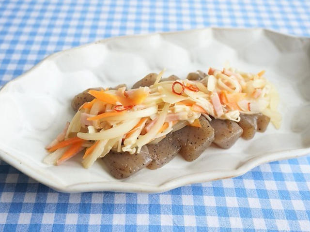 こんにゃくは「グルコマンナン」という食物繊維を豊富に含んでいます。グルコマンナンは消化されずに腸まで届く為、腸の動きが活発になり、便秘にも効果的です。また腸内で体内のコレステロールなどを吸収して体外に排出する働きもある為、コレステロールが気になる方にもおすすめの食材です。