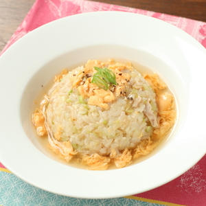 炒飯はご飯の量が多くなってしまいがちなメニューですが、卵でボリュームアップさせることで、ご飯少なめでも満足感のある炒飯になりますよ。歯ごたえのある野菜やキノコ類などをたっぷりと取り入れる事で、食べ過ぎ予防にもつながります。一口20回を目安としてよく噛んで食べましょう。
