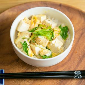 朝食や昼食もバランスの良い食事を☆豆腐の卵とじ丼