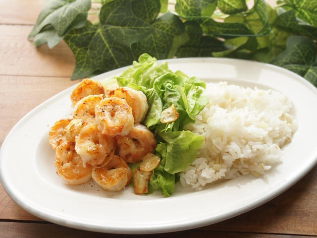 ぷりぷりなガーリックシュリンプとアサイーベリーのデザートで気分はハワイアン♪ガーリックシュリンプはエビを漬けダレに漬けこみ焼くだけなので簡単に作れます!一回り大きいお皿にガーリックシュリンプと水菜のサラダ、ミニトマトのマリネを一緒に盛り付けワンプレートにするとより華やかになりますよ。
