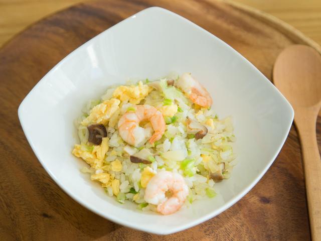 炒飯はご飯の量が多くなりがちなメニューですが、たっぷりのキャベツを加える事でご飯少なめでもボリュームたっぷりで満足感のある一品となります。また、シャキッとした食感があり噛む回数が増えるので、食べ過ぎ予防にもつながりますよ。ナンプラーを加える事で少しエスニック風な炒飯に仕上がります。