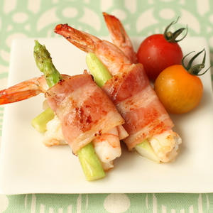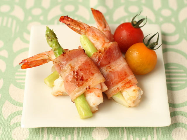 エビでボリュームアップ♪アスパラのベーコン巻き