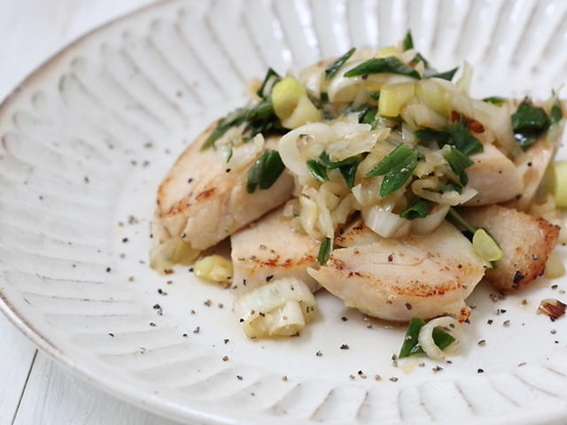 ごま油が香る!柔らか鶏むね肉のネギ塩ダレ