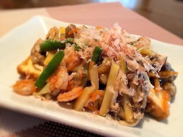 生揚げやエビ、きのこ、野菜をたっぷり使った甘酢あんかけは、たんぱく質やビタミン、ミネラルが一品でしっかり摂れます。使う食材は多いですが調理行程は「切る、炒める、調味してとろみをつける」と簡単なのでぜひお試しください。蒸し暑くなるこの時期はさっぱりとした味付けだと食が進みますね♪