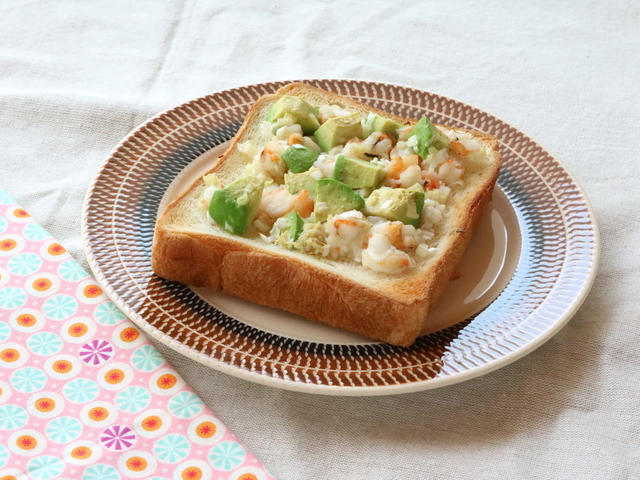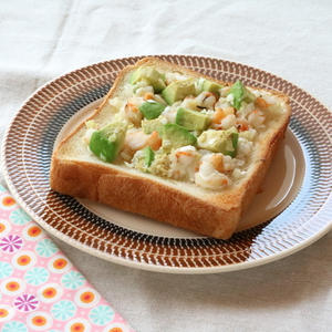 香味野菜が隠し味!色合いもきれいなエビとアボカドのトースト