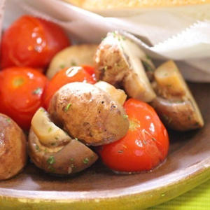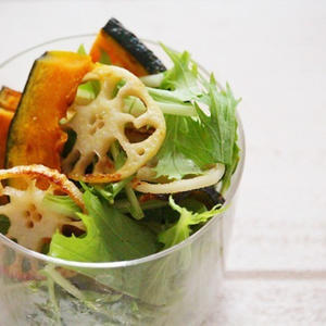 今が旬の枝豆をたこと一緒にオリーブオイルで炒めました。赤みがかったたこときれいな緑色の枝豆の色のコントラストも美しいメニューです☆かぼちゃやレンコンをグリルするひと手間がおいしさアップになるサラダ、バターが香るトマトとマッシュルームの蒸し物と一緒に、パンを主食として楽しめる献立になっています♪